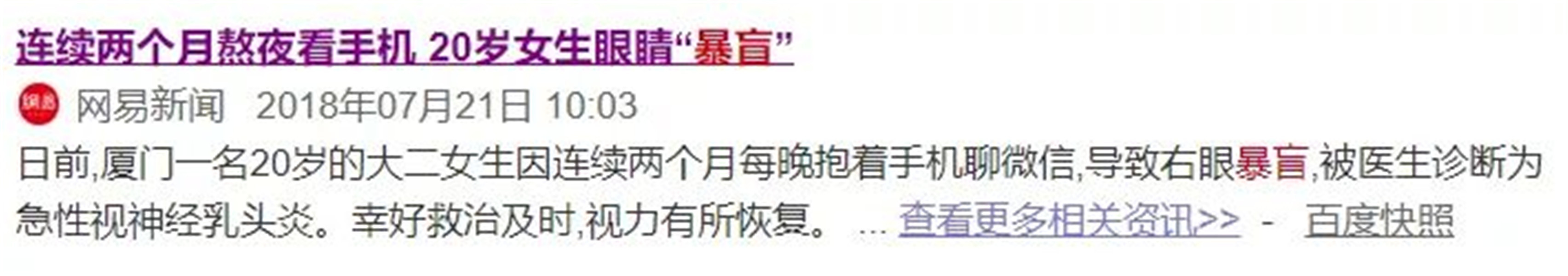 然而长时间使用手机等电子产品,危害则不止视力下降这么简单,厦门一名20岁的女生因连续两个月每晚抱着手机聊微信,导致右眼暴盲,被医生诊断为急性视神经乳头炎。