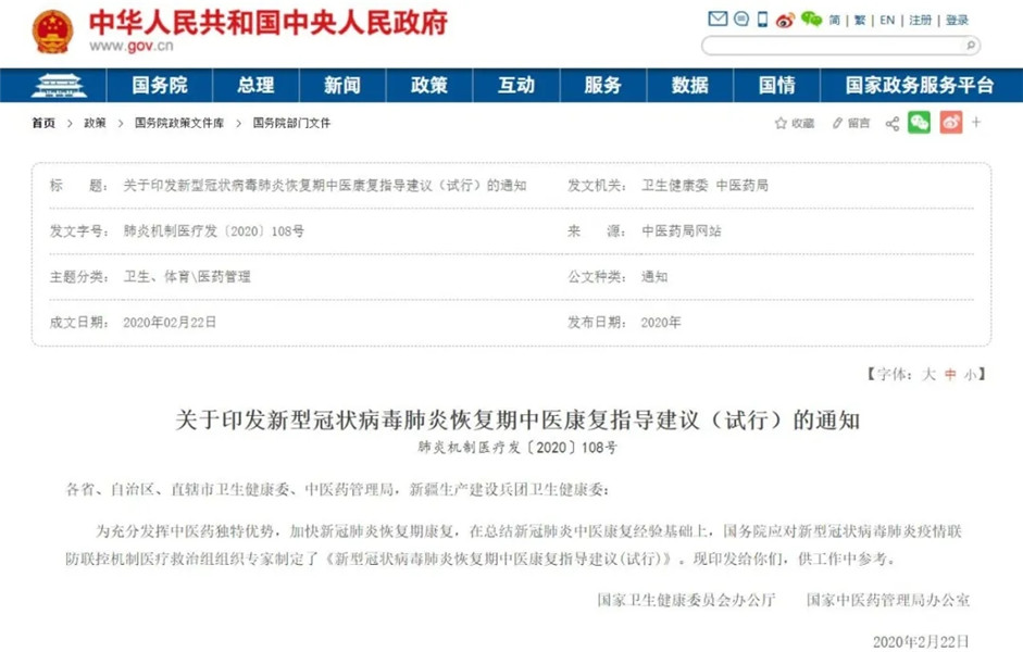 在面对此次新冠病毒肺炎疫情上,中医的介入与作用也得到了许多地区官方报道的认可。