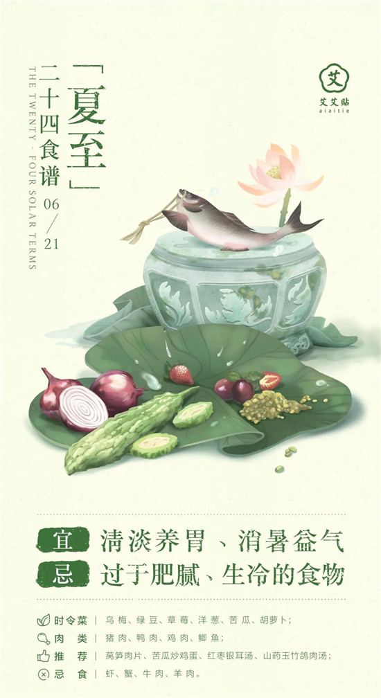 夏至时节气候炎热,人的消化功能相对较弱,饮食要适当清淡,顾护心脾。