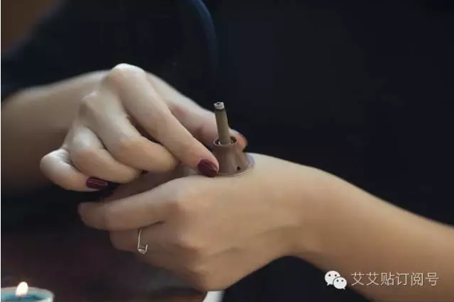 撕开底部粘纸,点燃艾艾贴,贴在身体相应部位,当艾柱烧至止燃线后会自动熄灭,冷却后收集艾灰,取下底座。一般部位连灸两至三遍即可。