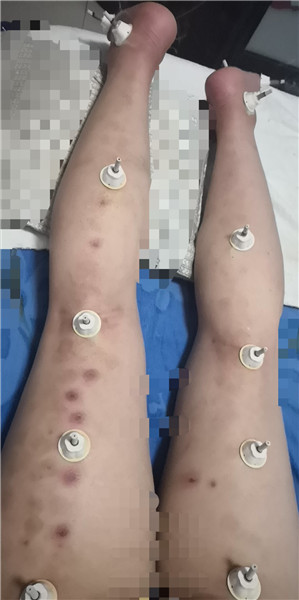 检查后我就另配穴位艾灸,主要集中艾灸:督脉、膀胱经、阿是穴,配穴有神门穴、膏肓穴、带脉、秩边穴、环跳穴、承扶穴、殷门穴、委中穴、承山穴、复溜穴、束骨穴、涌泉穴、风市穴、血海穴、阳陵泉穴、足三里穴、悬钟穴、三阴交、太溪穴、解溪穴、太冲穴、太白穴、丘墟穴、后溪穴,以上穴位具有疏通经络、活血化瘀,疏肝健脾,益肾理气、调理气血功能。