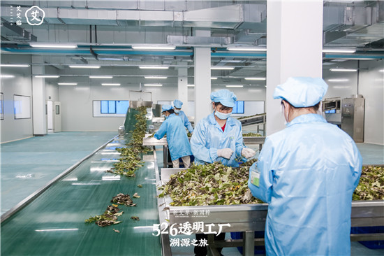 艾草收割回来首先从保鲜仓库进行杆叶分离,把艾叶和杆子分开,通过传送线和升降线传到筛选车间,工人再次检查没有问题再传到输送线。