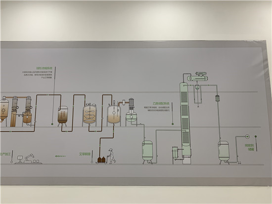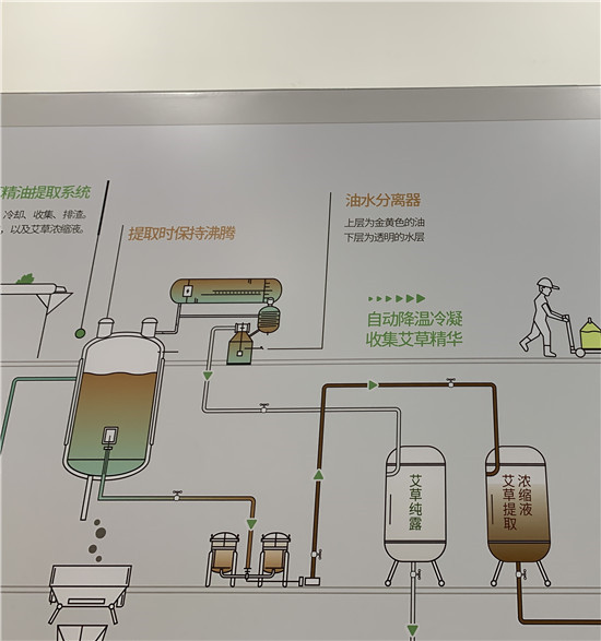 冷凝下来的芳香水会被设定一定的流速,缓慢进入到二楼的接收罐中,艾叶的精油和芳香水可以直接作为原料使用。
