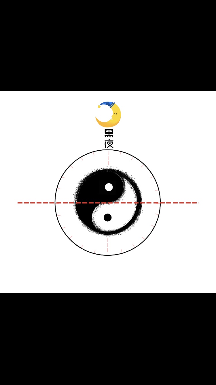 那阴阳消长规律是什么意思呢?消是消减,减少的意思,长就是增长的意思。大家看下面这个阴阳太极图,万事万物都由阴阳组成,这个太极阴阳图相当于是地球,中间的红色线代表地平线,我们人是站在地平线上,看到天空的,所以地平线以上是地面和天空,地平线以下是地里面的水土。