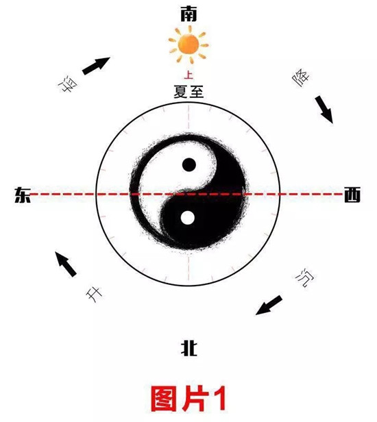 消是消减,减少的意思,长就是增长的意思。大家看下面这个阴阳太极图,万事万物都由阴阳组成,这个太极阴阳图相当于是地球,中间的红色线代表地平线,我们人是站在地平线上,看到天空的,所以地平线以上是地面和天空,地平线以下是地里面的水土。