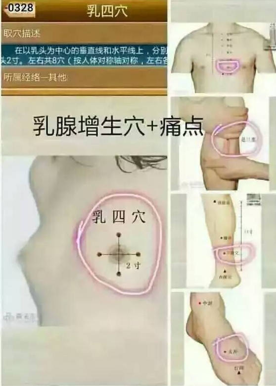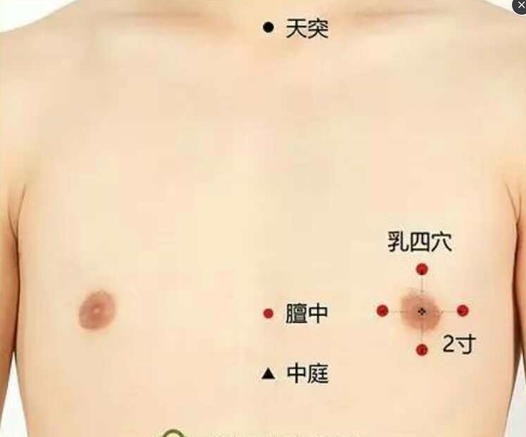 艾艾贴艾灸祛病穴位:灸乳四穴、膻中、阿是穴、肿块。