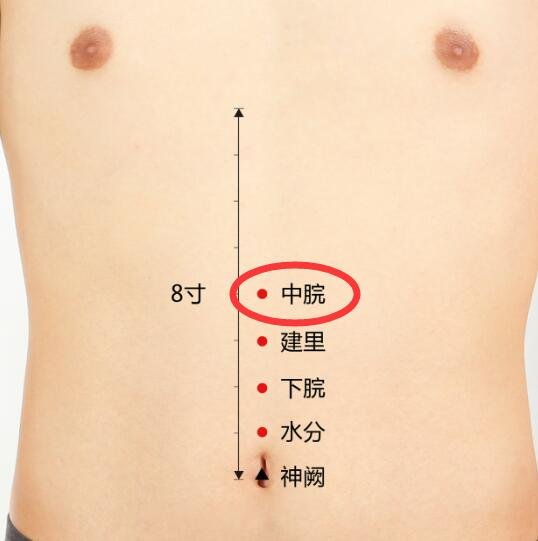 艾灸穴位: 中脘、神阙、三阴交、涌泉穴、太溪穴、太冲穴。