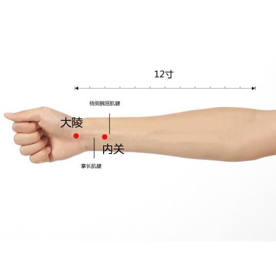 灸取穴位:神阙,曲池,内关,足三里,三阴交。
