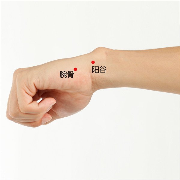 【取穴方法】腕骨在手掌尺侧,当第5掌骨基底与钩骨之间的凹陷处,赤白肉际。
