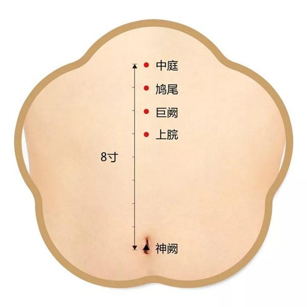 巨阙穴是任脉上的主要穴道之一,针灸文献记载:“主手少阴心之募”,故此穴主要作用于胸痛、心痛、心烦、惊悸、胸满气短等胸部不适。而且此穴位于食道和胃上口相会处,还可用于调理食欲不振、胃胀等。