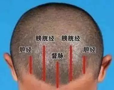 五指张开,从头部的前方向后方梳,稍微用力刺激头部中间的督脉,两旁的膀胱经、胆经,共5条经脉,称为“梳五经”。