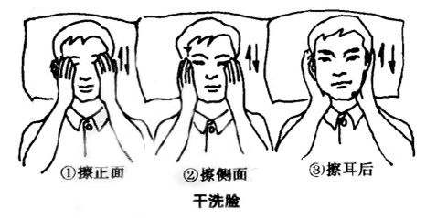 双手搓热,用手掌上下推擦面部肌肤及耳后各20~30 次,每天早、中、晚各做1次。干洗脸的好处很多,可明目、醒脑,还能加速血液循环,减缓面部皮肤老化,有美容的作用。