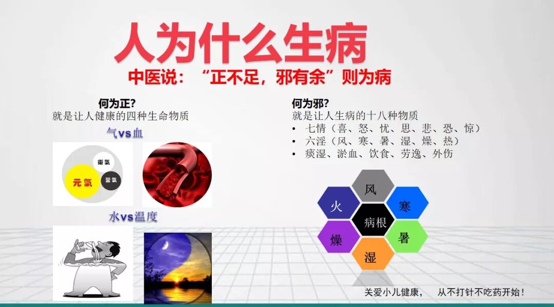 六淫是自然界的风寒暑湿燥火,但是现代的人火的问题反而少了,为什么呢?因为以前没有冰箱,没有过度的熬夜啊,没有经常吃生冷寒凉的食物,所以现在大家会发现不管是女性,儿童,老人,男性生病多数是虚症为主,我们现在的身体真的没有以前的人身体好,多数生病患者的体质是虚寒的。