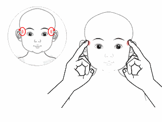 操作方法:用手掌掌面或食指、中指、无名指和小指并拢,在宝宝的腹部做顺时针环形磨动。