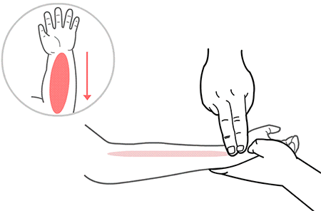 操作方法:从手腕推至肘弯,推100~ 300次,可以蘸着清水来做。