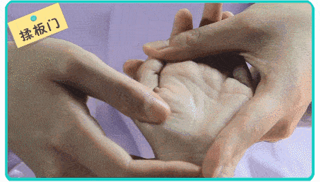 操作方法:用一只手固定孩子的手掌,然后用另一只手的拇指指端揉孩子的大鱼际,揉3分钟。