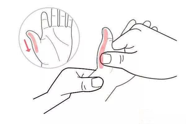 手法:妈妈用拇指指腹,沿着宝宝拇指外侧,从指尖推向指根,反复推3分钟。