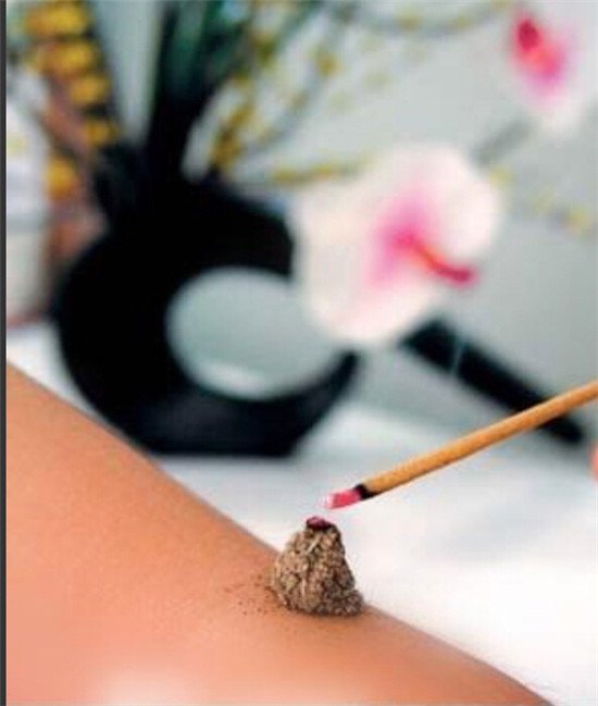 把艾绒捏成小柱状,直接放在皮肤上艾灸,很痛,而且留下非常难看伤疤