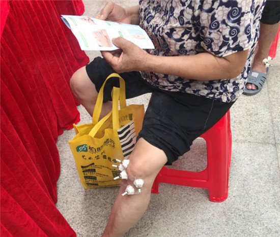 来到义灸体验现场的市民们,在热情的艾人们的介绍下,都对这种新奇的养生方式表达了兴趣,有不少的市民还当起了体验者,在现场感受艾灸养生的妙处。