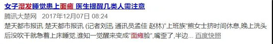 之前新闻有报道过,一些年轻人,洗头后懒得吹干,湿着头发就直接睡觉了,第二天起床头痛、头晕、左脸麻木,到医院一查:面瘫了!