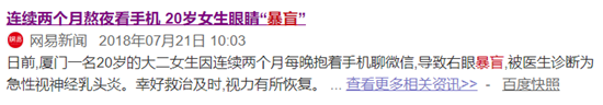 熬夜玩手机的危害则不止视力下降这么简单,厦门一名20岁的女生因连续两个月每晚抱着手机聊微信,导致右眼暴盲,被医生诊断为急性视神经乳头炎。