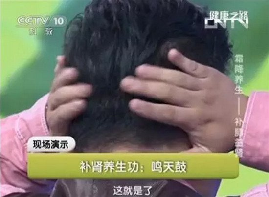 具体做法:两个胳膊肘支在桌子上,头稍微低下,闭上眼睛,先以两手心掩耳,然后用两手的食指、中指和无名指分别轻轻敲击脑后枕骨,耳朵中随即可以听到“咚咚”的好像击鼓的响声。敲击要有节奏,每次敲击36下。