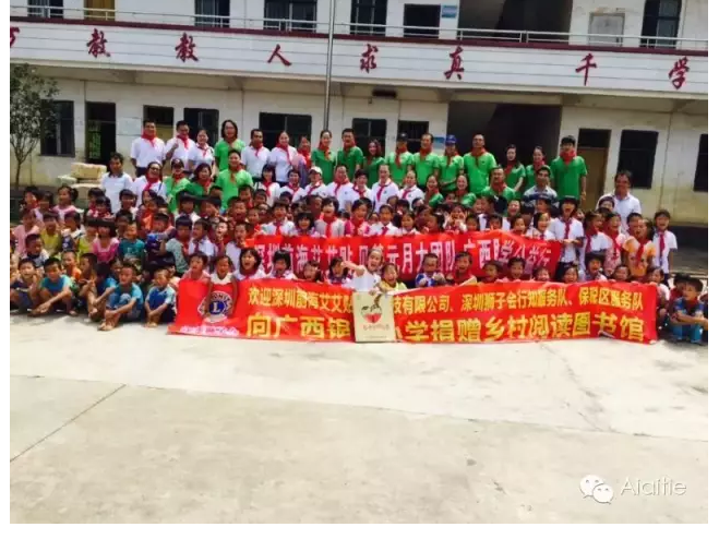 9月25日,由深圳市前海艾艾贴生物科技有限公司、深圳狮子会行知服务队、保税区服务队联合发起的“爱满中秋助学公益行,大型公益捐书活动”在广西省来宾市蒙村镇银峡小学温暖上演。