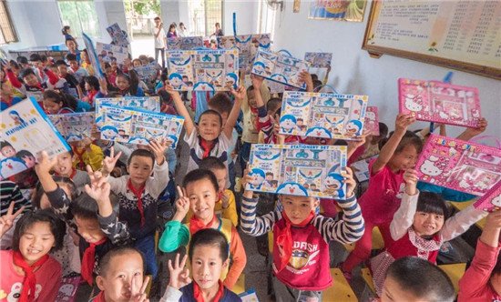 他们中的大多数,都是留守儿童,寒风刺骨的冬天还穿着破旧的凉鞋,当崭新的图书和文具出现在他们面前时,孩子们眼里有藏不住的新奇和兴奋。