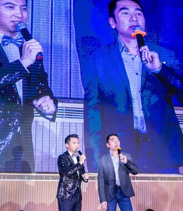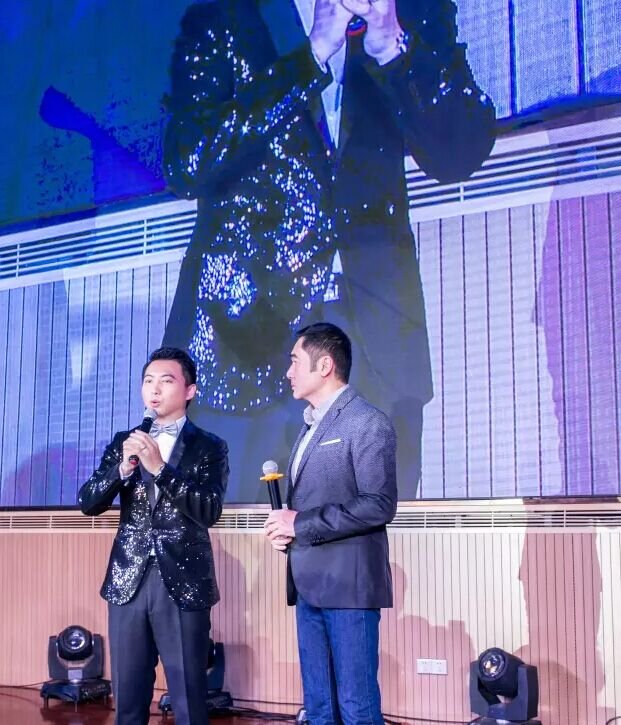 妥妥地上了台,方中信和我们来自深圳财经频道长得有点像加大版海泉(没错就是羽泉组合里面那个胡海泉)的主持人胡冰站到了一起,开始扯家常啦!