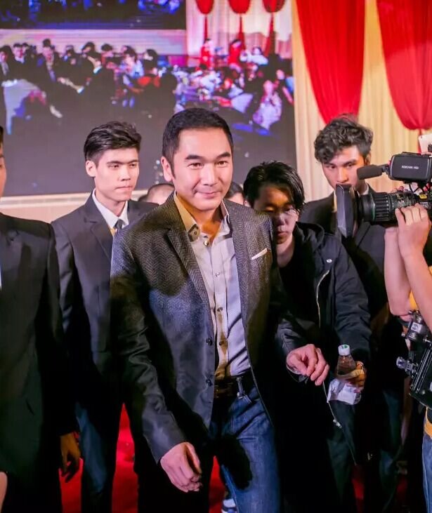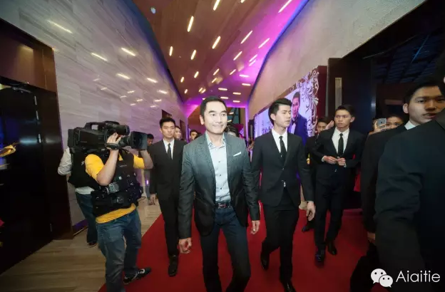 而播放视频的同时,我们的秦王,当时正由四位身高180+的小鲜肉安保护送着在会场门口,跟我们的艾艾贴合影~