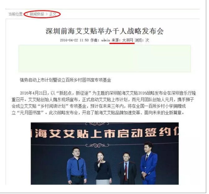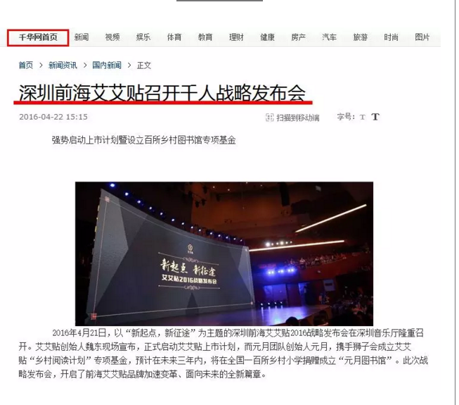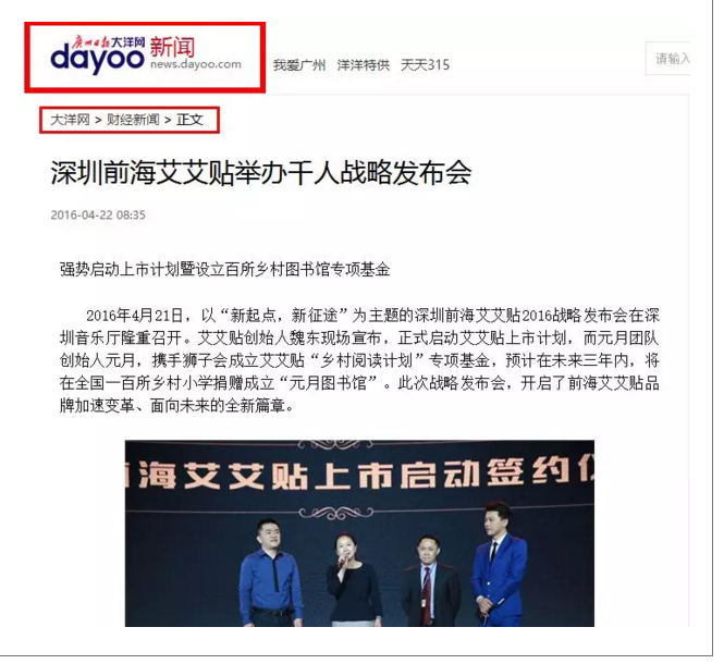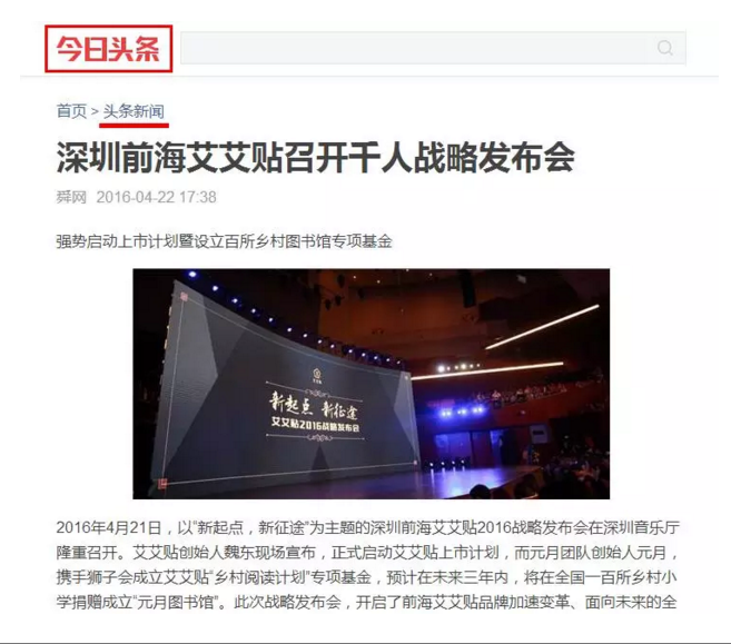 4月21日,艾艾贴战略发布会完美落幕!翌日,数十家新闻网站发布了大会的相关报道,其中更包括凤凰网、今日头条、光明网、中国网等知名媒体网站。艾艾贴影响力早已辐射全国,每一次企业活动均产生巨大媒体效应,作为一名“艾人”,感到无比骄傲!