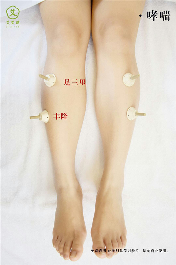 艾灸穴位:大椎、合谷、膻中、尺泽、丰隆、涌泉。