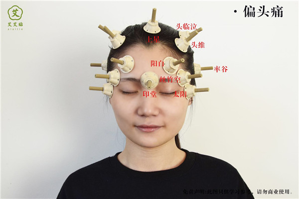艾炙配穴 :百会、风池、太阳透率谷、太冲。