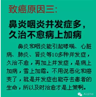 在许多鼻炎患者的心目中,患上鼻炎会对生活造成困扰,但似乎对健康不会产生太大的伤害,所以他们对鼻炎一直是睁一只眼闭一只眼,忽视了治疗。但是艾艾君在这里提醒各位小伙伴们,鼻炎久拖不治会严重影响到我们的健康,常年鼻炎患者患鼻咽癌的几率更高,而由鼻炎所引发的并发症也非常多!